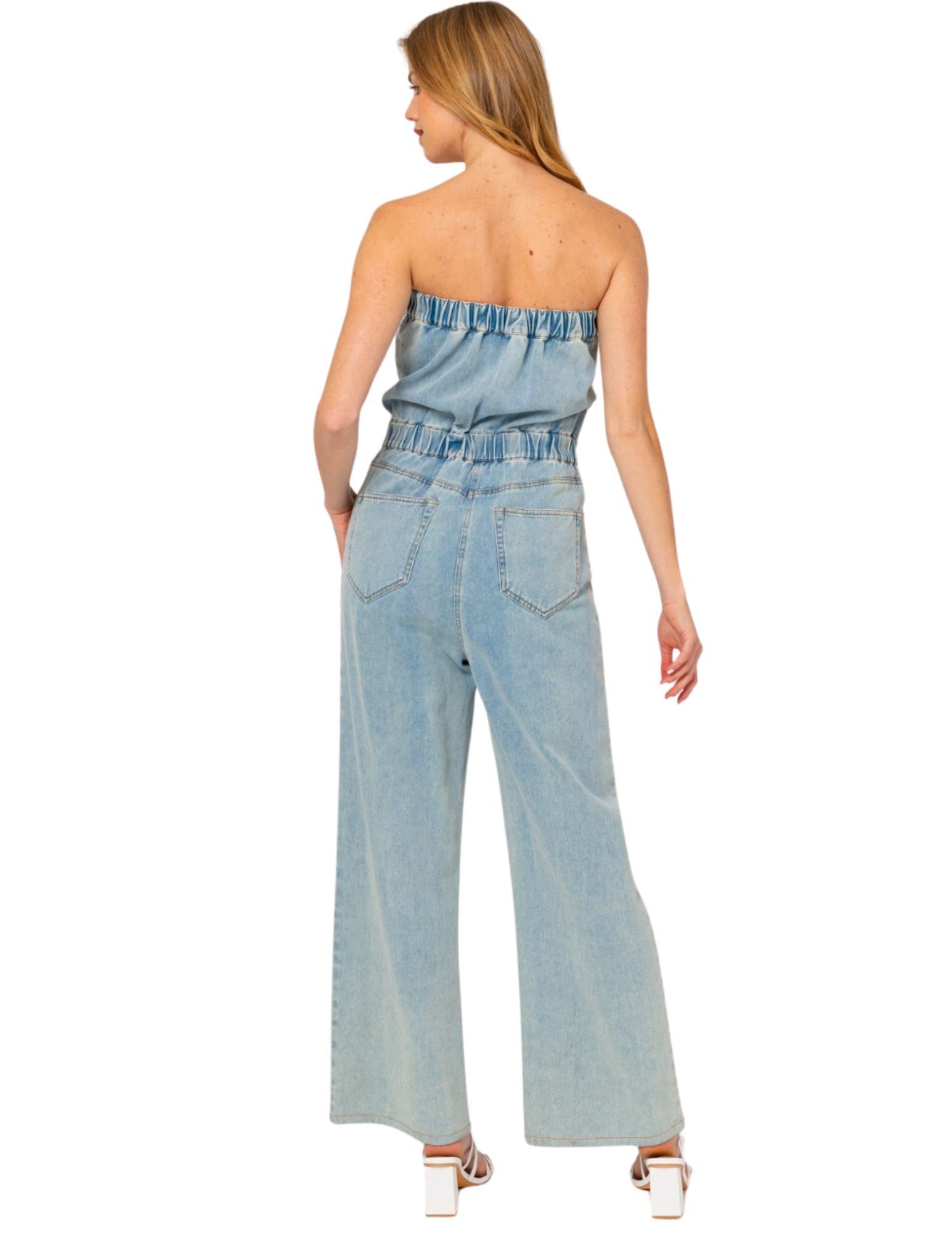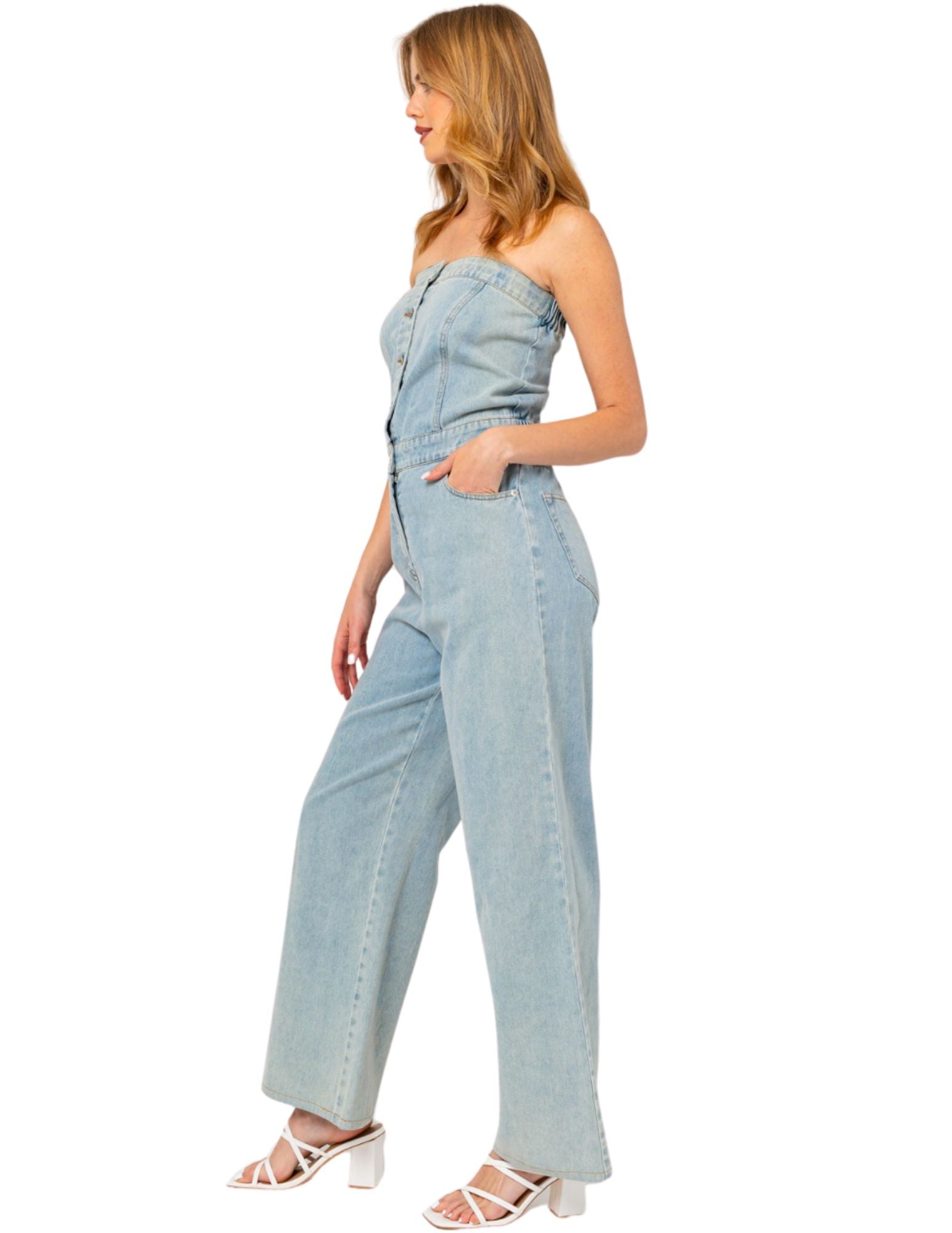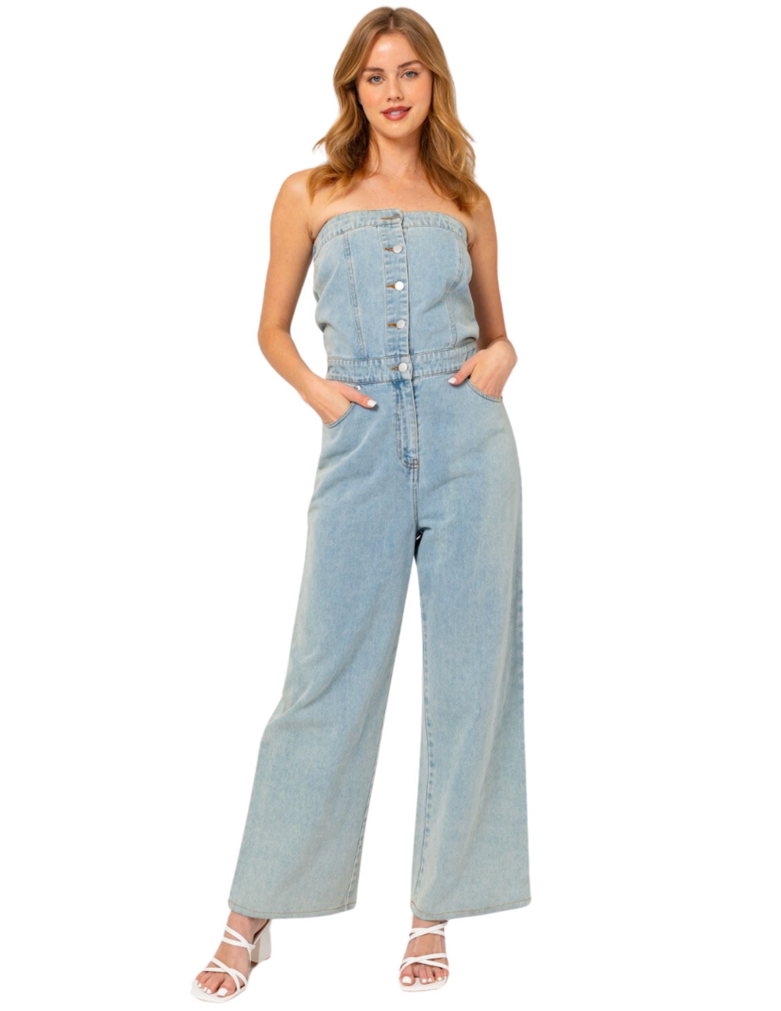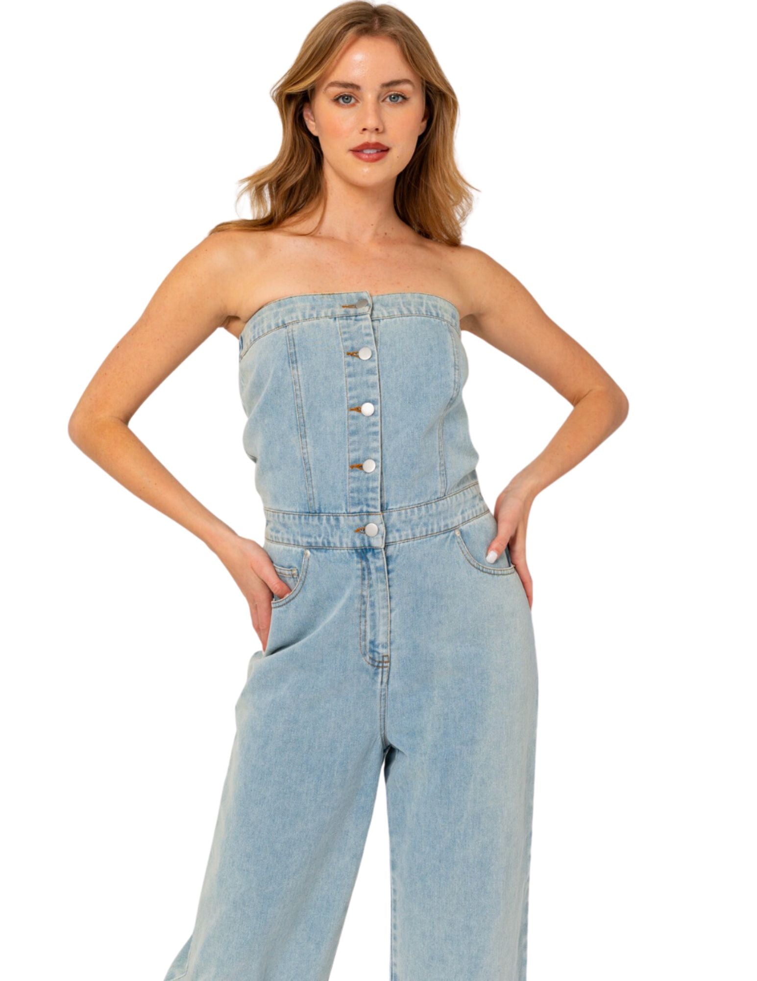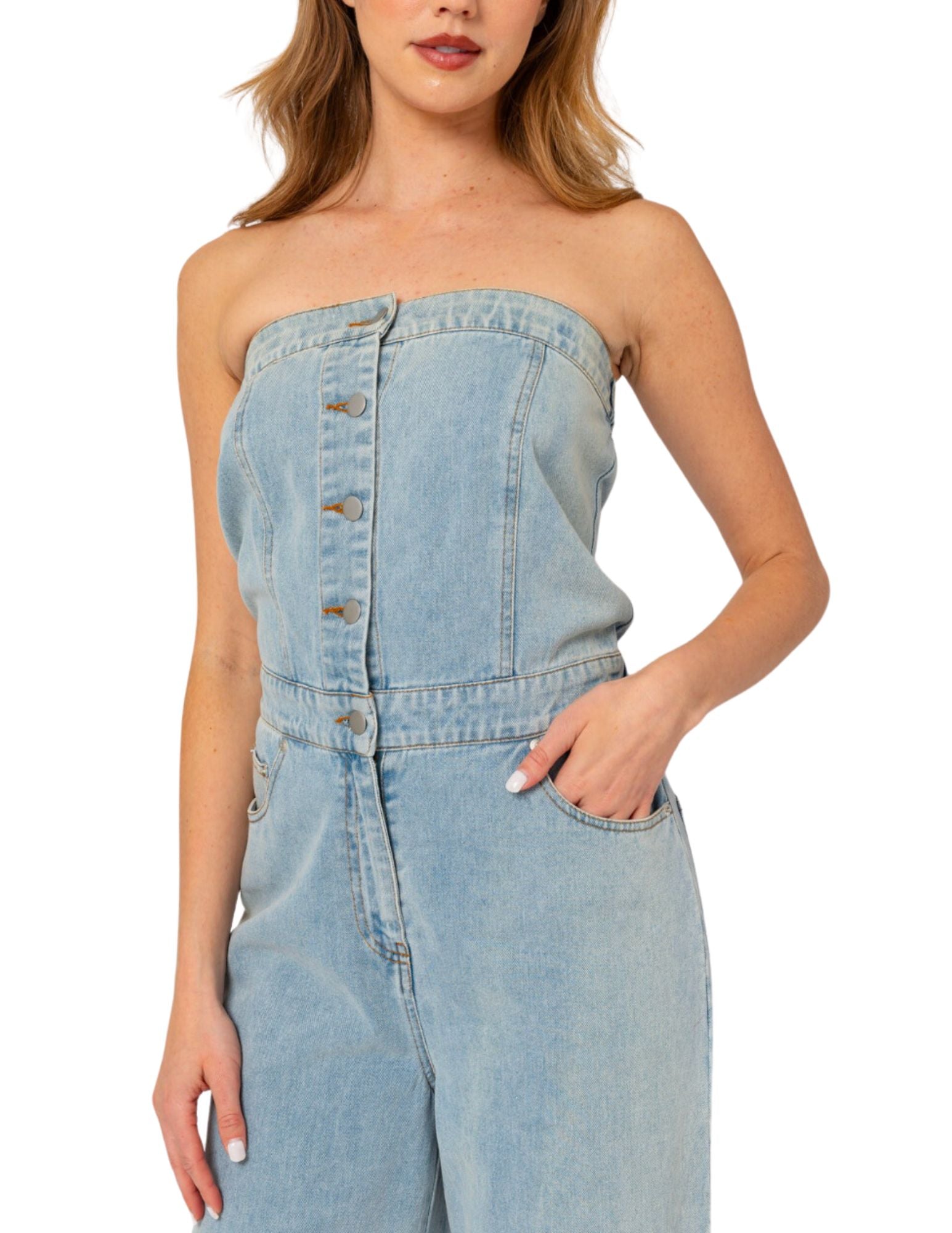 - Button tube denim jumpsuit