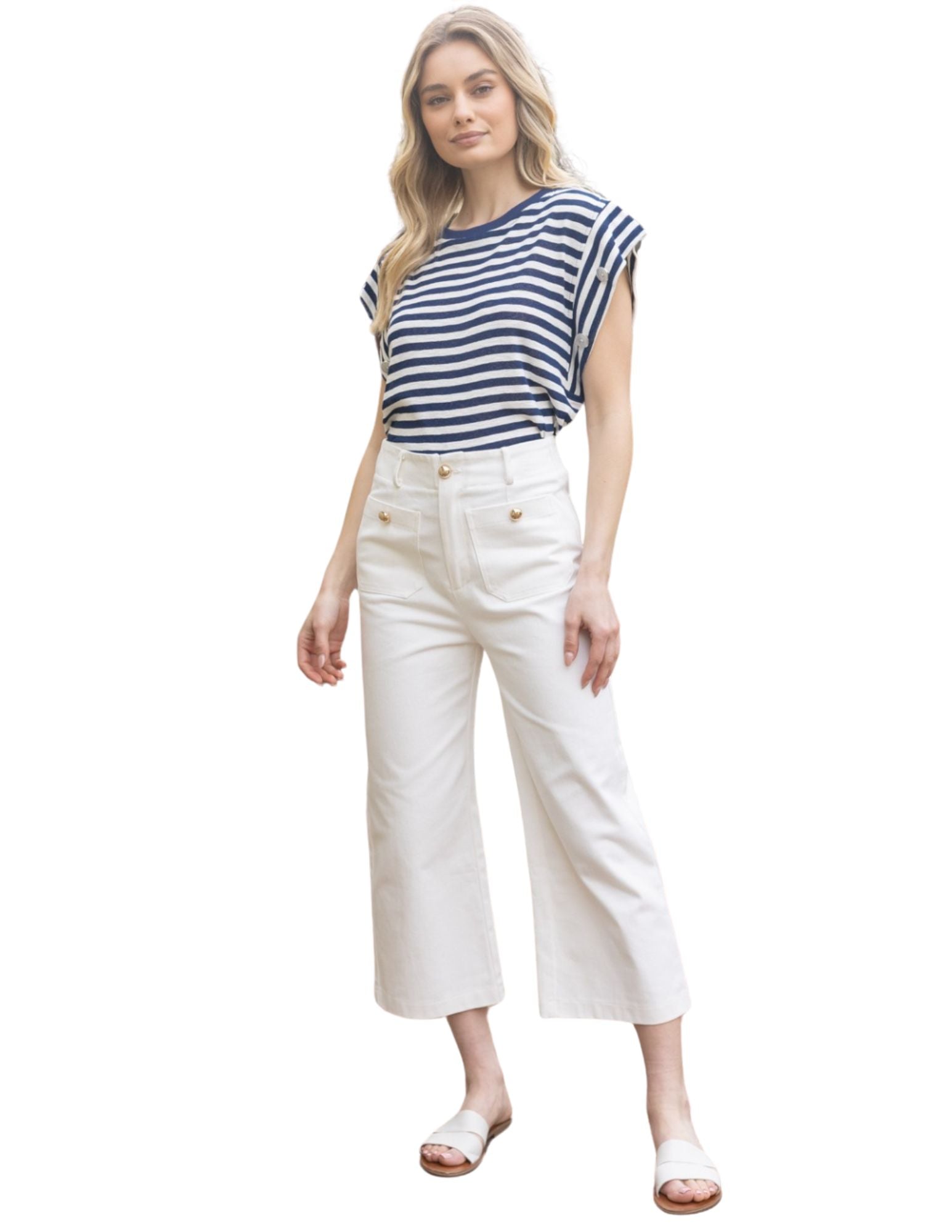 Gold Button Detailed Canvas Culottes
