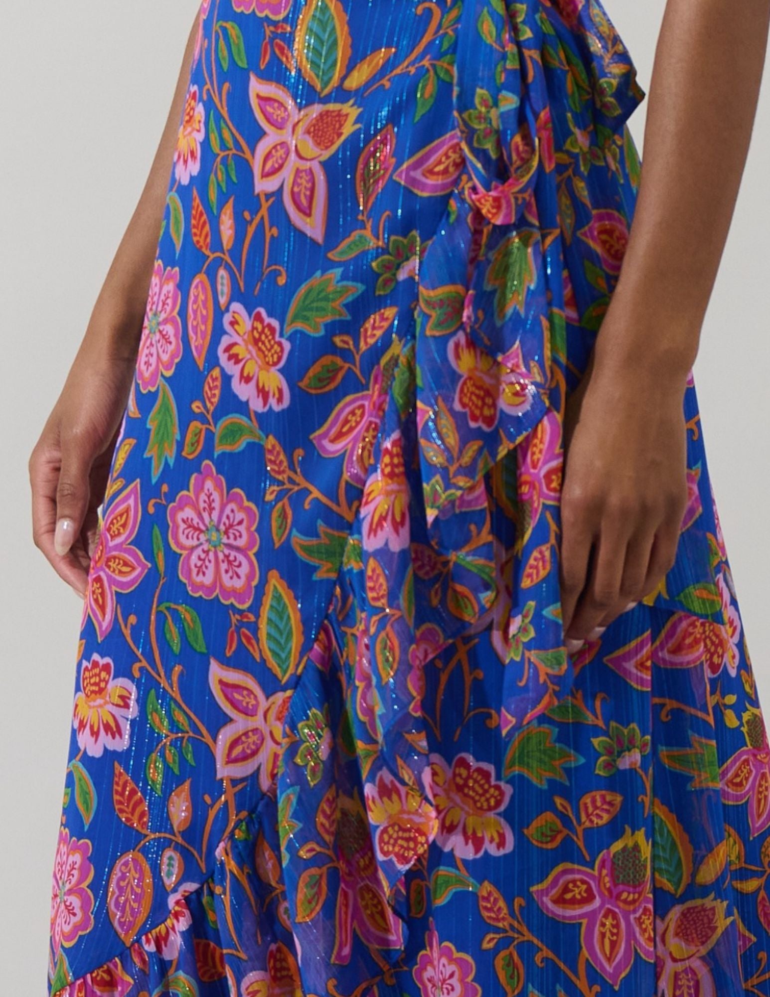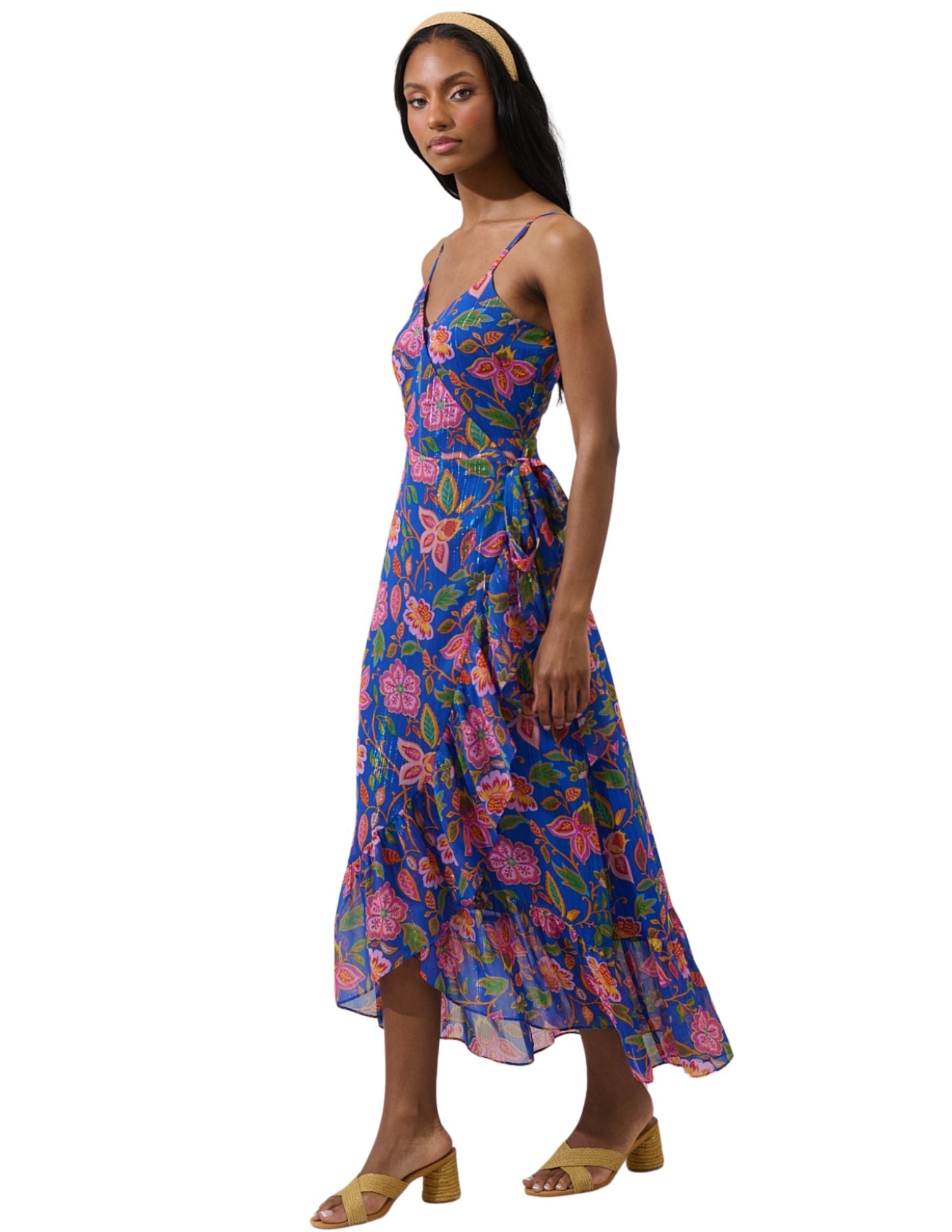 Get ready to shine in our Wendey Floral Zayna Wrap Maxi Dress! Featuring spaghetti straps and a stunning floral pattern, it drapes beautifully for a flattering, feminine silhouette. Pair it with sandals and a floppy hat for a chic, summer-ready look. - Sleeveless - Wrap - Floral - Lined